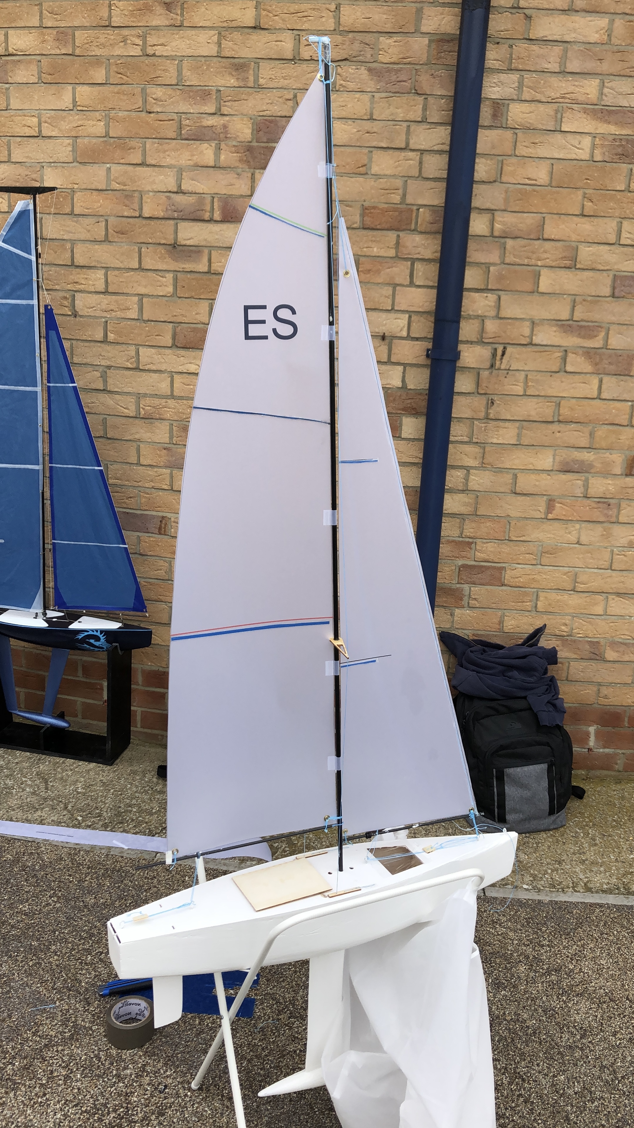 A model yacht race between the Solent University Yacht and Powercraft Desgin students happens yearly. My model yacht which was designed to the rule set by the lecturers was optimised for top speed by maximising the wateline length when heeled. Extra marks were scored by integrating an innovative gyroscope within the hull to dampen the twitchy motions that would occur from wind gusts. The yacht was built in balsa on a 2D laser printed wooden jib. In this model full marks were awarded to me, and the yacht finished in the top 5 out of 40 competitiors.